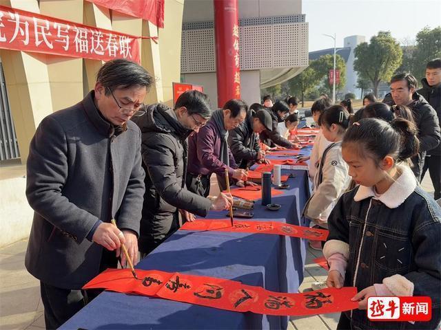 “请帮我写一对春联”“我要一张福字,带回去贴在门口!”……今天的活动现场热闹非凡,书法家们铺开红宣纸,挥毫泼墨,“福到人间喜气盈,春回大地祥光满”“蛇盘福字吉祥绕,鹊唱枝头好事连”,不一会儿,一幅幅寓意吉祥、风格各异的春联跃然纸上,呈现在市民面前,大家高兴地挑选着,并带走美好祝愿。“今天书法老师那边要了两张‘福’字,自家女儿学过书法,现场也写了一副对联。”市民张女士觉得开展这样具有年味的活动,不仅让家中增添十足的喜气也为他们的心头增添了暖意。同时,学生们也积极参与其中,在实践中传承和弘扬书法艺术。